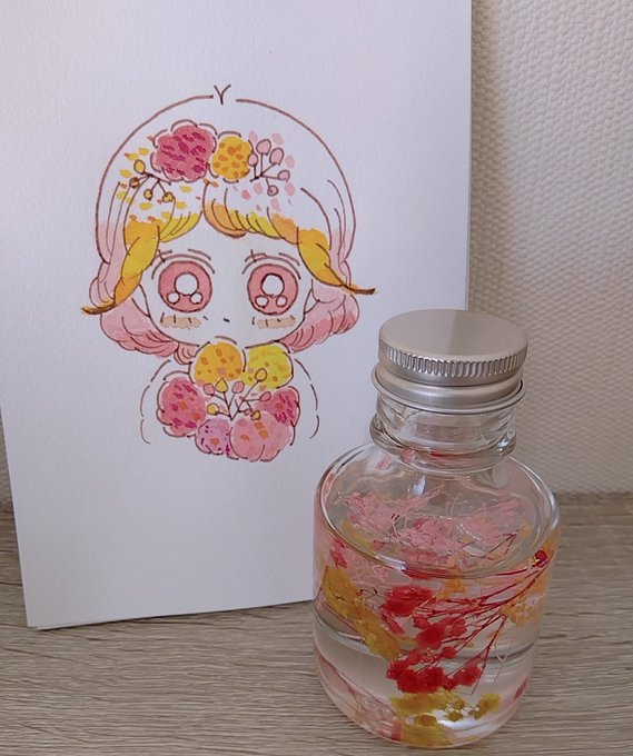 ハーバリウムを作ってみました💐 意外と楽しかった( *´꒳`*) #illustration #イラスト #絵描き #絵描きさんと繋がりたい #透明水彩 #春の創作クラスタフォロー祭り #ハーバリウム