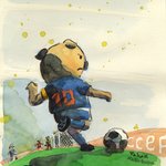 100日チャレンジ 6日目 6月30日は「ハーフタイム・デー」ということで サッカー選手のブタさんのフリーキックを描きました。 #100日チャレンジ #今日は何の日 #ハーフタイムデー note.com/ekakinonakagaw…