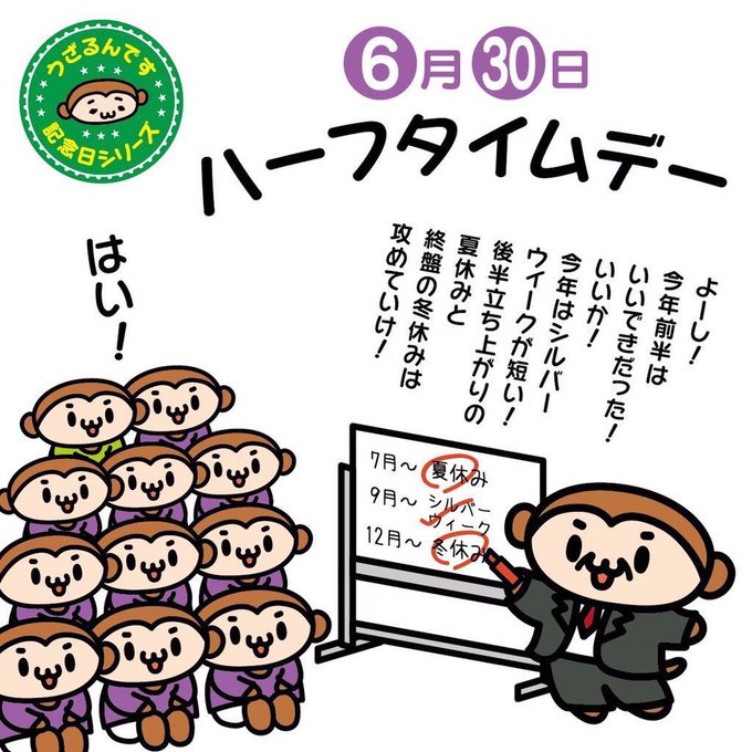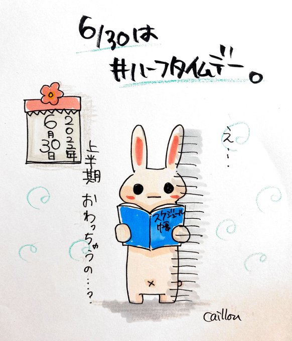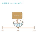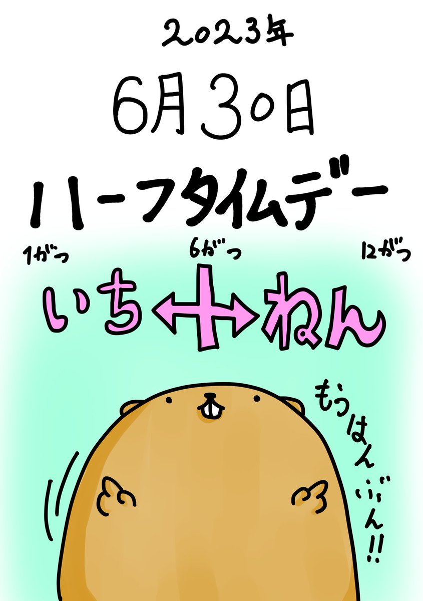 6月30日はハーフタイムデー。今年はもう半年たちますね!今日は一年間の折り返し地点となる日、ハーフタイムデーなんです。今年の前半が忙しかった人も何もしなかった人も、今日はハーフタイムだからゆっくり休憩。明日からの後半戦がんばっていこ〜 #ハーフタイムデー #イラスト好きな人と繋がりたい