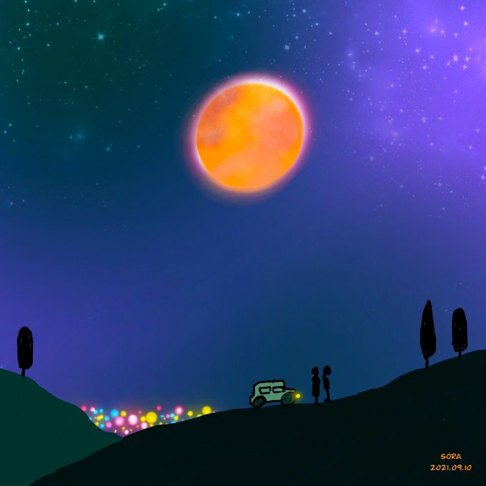 2021.09.21は #中秋の名月 英語で #ハーベストムーン。 ハーベストでお菓子の名前が浮かんだのは私だけ?😊 #HarvestMoon #満月 #夜景 #お絵描き好きさんと繋がりたい #イラスト好きさんと繋がりたい #絵本好きさんと繋がりたい #お絵描き練習中 #デジタルイラスト