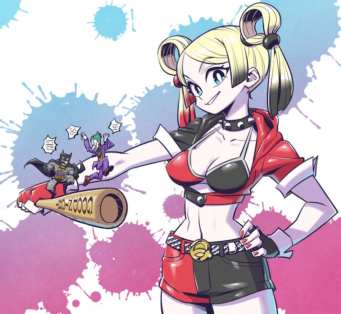 ハーレイ・クイン。 好きなキャラだけど今まで描いたことがなかった。 カラーリングが青赤の時もあるけど、やっぱり自分は赤黒が好きかな。 バットの上になにかいる。🦇🃏 #ハーレイクイン #HarleyQuinn #batman