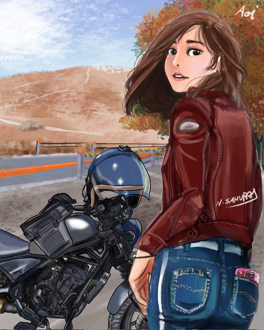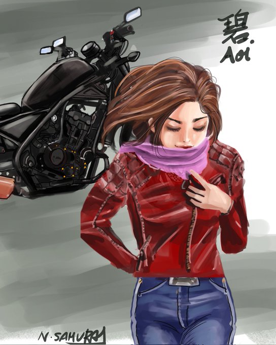 おはよう☀️オリキャラのレブル乗り碧を描きました。朝晩冷え込むけど今日1日頑張れば😃いつも見てくれてありがとう☺️#オリキャラ #イラスト #バイク乗りとつながりたい #バイク好きな人と繋がりたい #絵柄好みって人にフォローされたい