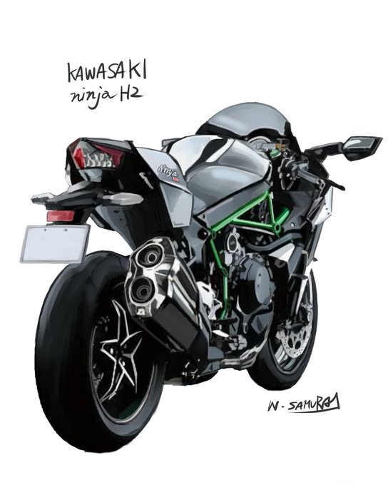 カワサキのH2描きました。どの角度から見てもカッコいい✨試乗会で乗ったけどしびれた🤣イヤ~バイクって本当に最高に👌#バイク #バイクイラスト #カワサキ #H2 #バイク乗りと繋がりたい #バイク好きな人と繋がりたい #鉄馬を駆れ