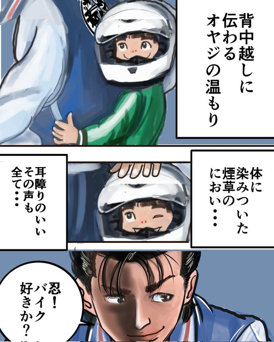 おはよう😆☀️オリジナルバイク漫画鉄馬を駆れ❗の陽介とニンジヤです。1台のバイクが繋ぐ父と息子の物語です✨ #バイク #鉄馬を駆れ #イラスト #gpz900r #カワサキ #ニンジヤ #バイク好きな人と繋がりたい #バイク乗りと繋がりたい #絵柄が好みって人にフォローされたい