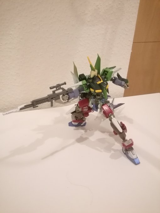 おはようございます! 昨日の夜墨入れとデカールだけのつもりがあれよあれよで HG 1/144 バウ完成☺️ シールドとビームライフルちょっと失敗が悔やまれる…あとほこりが😂 #ガンプラ #ガンプラの画像を貼るとRTされると聞いて #ガンプラ好きと繋がりたい #ガンプラは自由だ #BAWOO #バウ