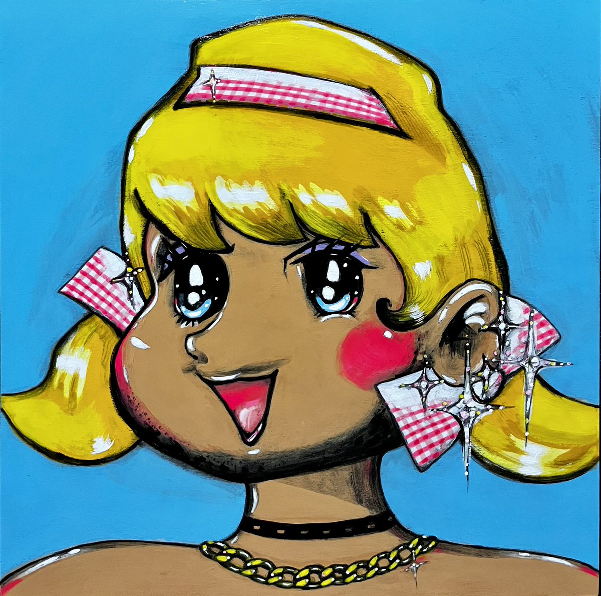 ✨展覧会スタートなのだ‼︎ 『コラボしたのだ‼︎展~赤塚マンガは自由のココロ~』 "Nostalgic Glamour: Their Remix" 33 × 33 cm, acrylic on board 今を生きるバカボンのパパのパパ、ハジメちゃん、秘密のアッコちゃんを描きました🩷 これでいいのだ‼︎ #miwaelharar #バカボン twitter.com/miwael_art/sta…
