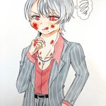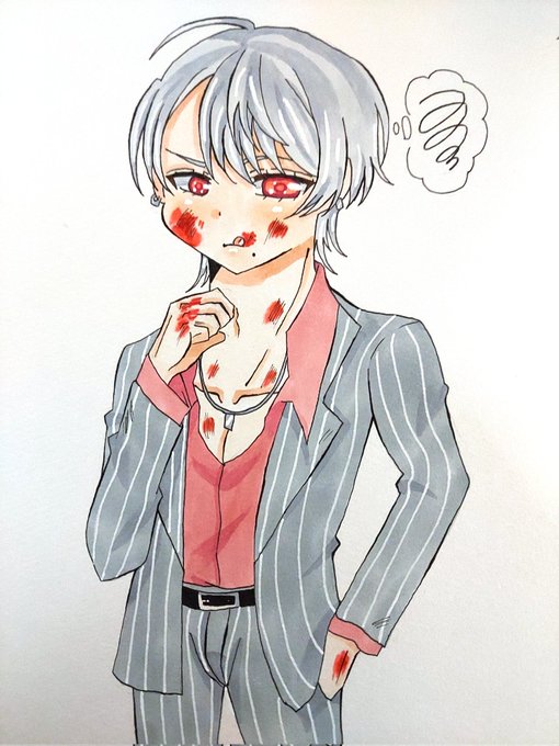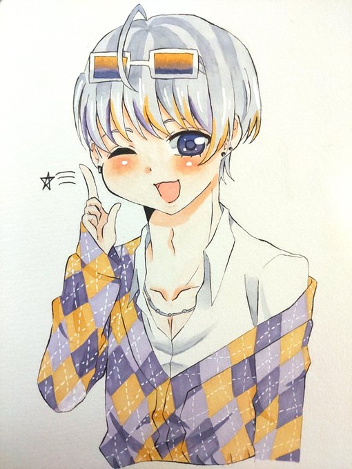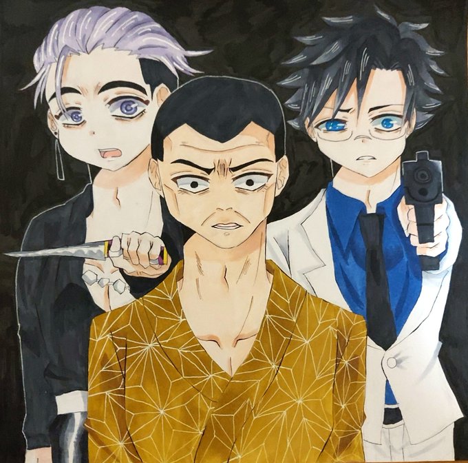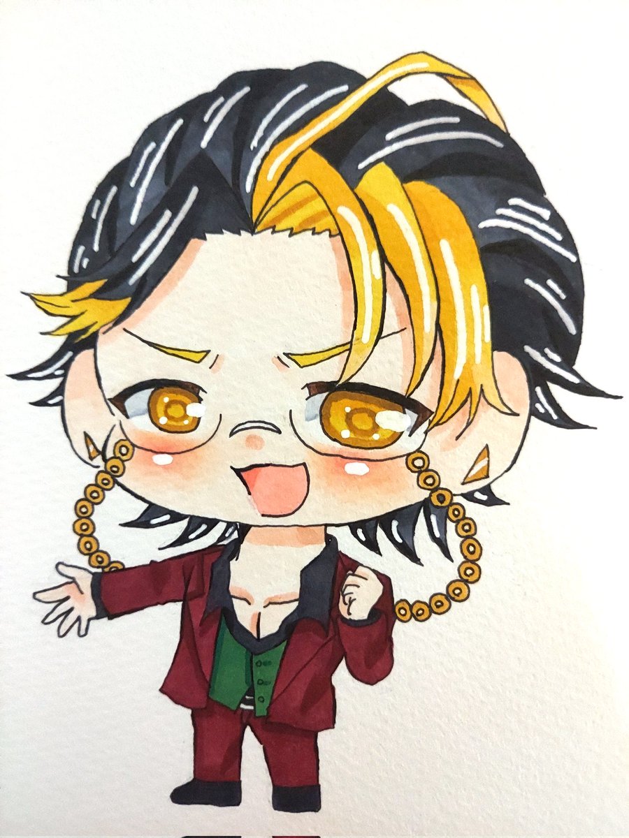 和中の兄貴(正月ver)。見たとき発狂したよね!ハプニングで見たら分かる通りほっぺに黄色のインクが飛び散った!!😭なんとか誤魔化したぜ!😏模様大変やった! #和中蒼一郎 #和中の兄貴 #天羽組 #ヒューマンバグ大学 #バグ大アート #イラスト #コピック #絵柄が好みって人にフォローされたい