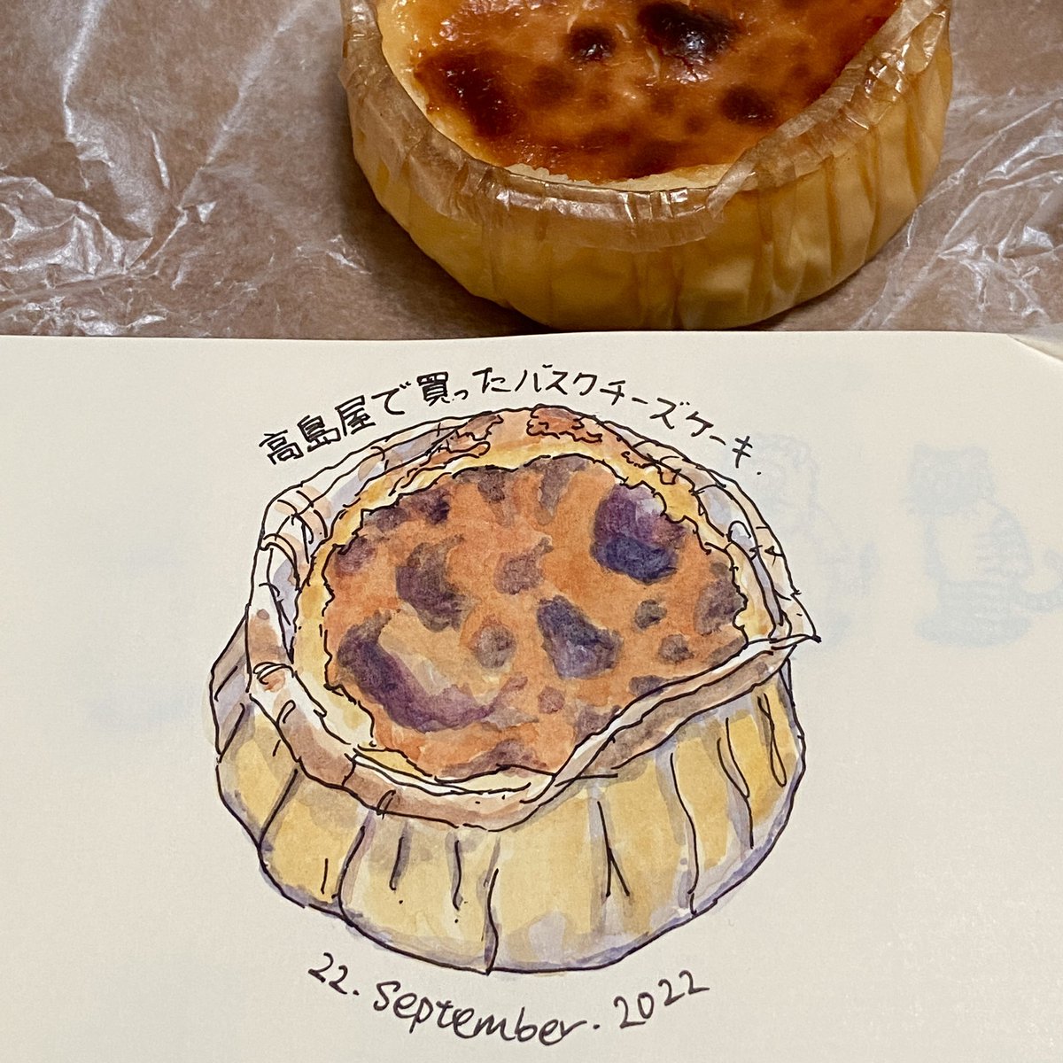 バスクチーズケーキ 久しぶりにスイーツの絵をスケッチ。 #バスチー #バスクチーズケーキ #水彩画 #スケッチジャーナル #スケッチ #絵 #イラスト #絵描きさんと繫がりたい #イラスト好きな人と繋がりたい