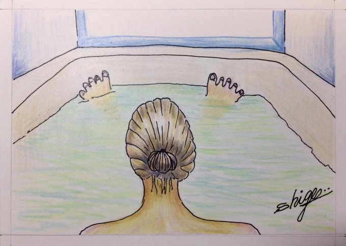〜バスタイム〜 今朝も色鉛筆を使って、バスタイムの絵を描いてみました。一日の疲れと汗を流して、ゆったりと湯船に浸かって至福のバスタイム。今日も一日お疲れ様。 #色鉛筆画 #女性 #後ろ姿 #バスタイム #絵を描いている人と繋がりたい #絵が好きな人と繋がりたい