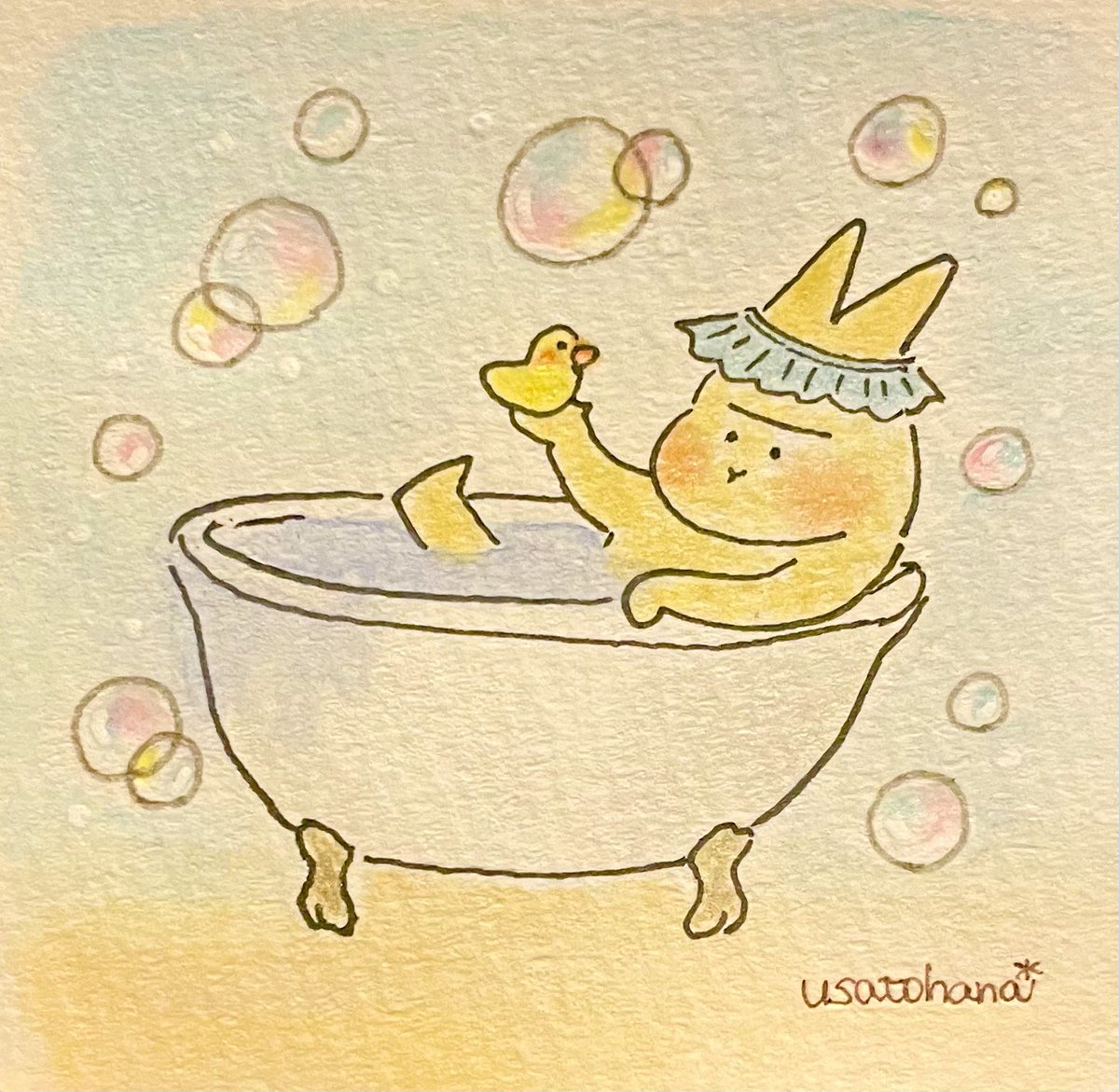 つかれた日は、湯船につかってゆっくりぽかぽかバスタイム♪ #ぽとん #ゆるキャラ #バスタイム #お風呂 #バスボム #お絵描き好きさんと繋がりたい #ほのぼの #イラスト #Illustration #illustrator