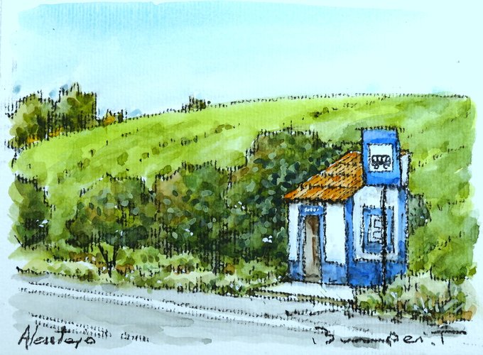 〜部活帰り〜 今日はアクリルガッシュの絵の具を使って、部活帰りの女学生を描いてみました。もう少しでバスが。夏のお昼前のひと時。 #アクリルガッシュ画 #風景画 #夏のお昼前 #女学生 #部活帰り #バス停 #田園 #入道雲 #絵を描いている人と繋がりたい #絵が好きな人と繋がりたい