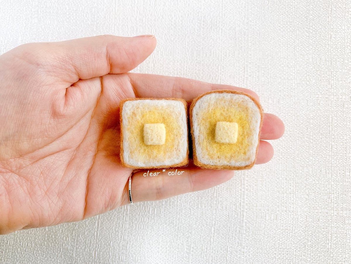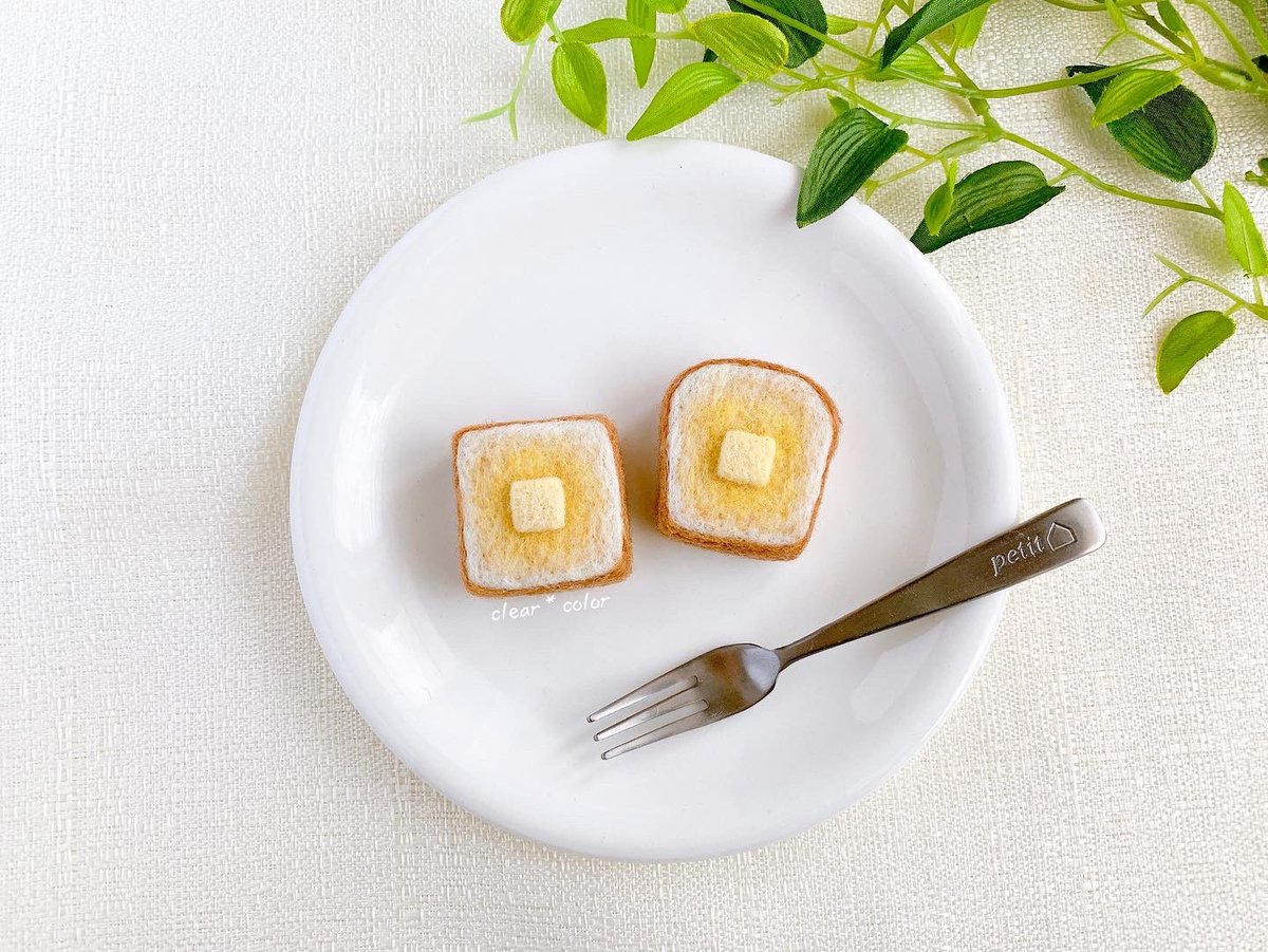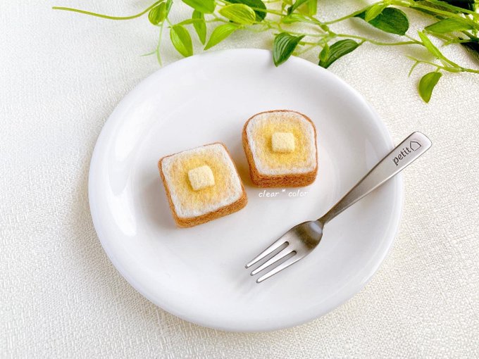 予定通りこの後21時からminneさんにて販売します。もしご縁がありましたら、よろしくお願い致します! minne.com/@clearxcolor #羊毛フェルト #ミニチュア #ハンドメイド #食パン #トースト #目玉焼きトースト #あんこバタートースト #バタートースト #インテリア #シルバニア #minne #minne_new