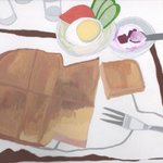 喫茶店のモーニング。 2022/10/21 #朝 #バタートースト #サラダ #モーニング #蓑島えみ #emiminoshima #minoshimaemi #イラスト #イラストレーター #illustration #drawing #painting #絵
