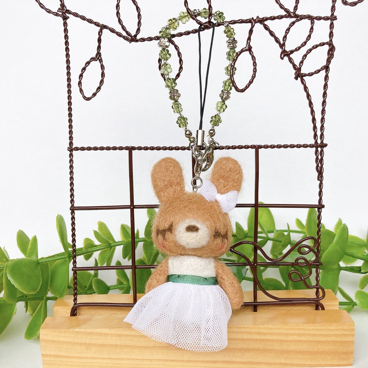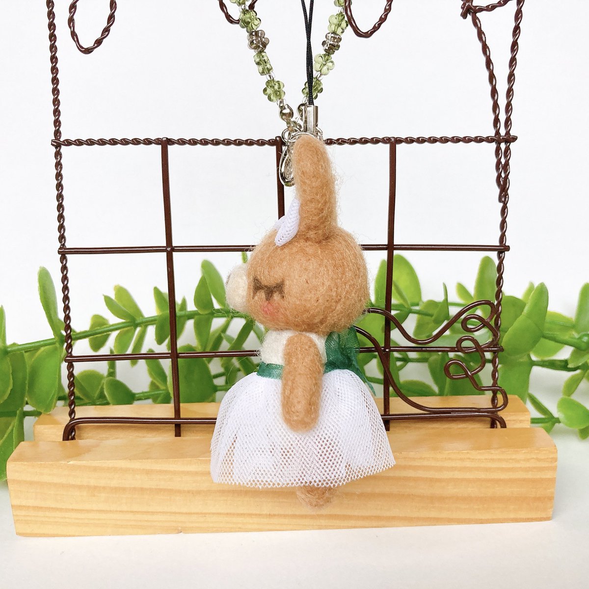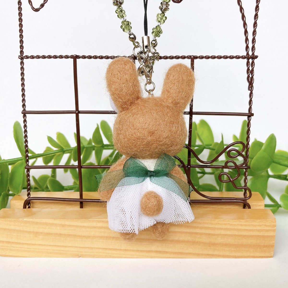 Aki Ako'S GALLERYさんのらぶりぃうさちゃん 茶色 ワンピース(白×白) 羊毛フェルト ストラップ バッグチャーム minne.com/items/33279062 #minne #minne_new #うさぎ #羊毛フェルト #バッグチャーム #ハンドメイド #ハンドメイド作家さんと繋がりたい