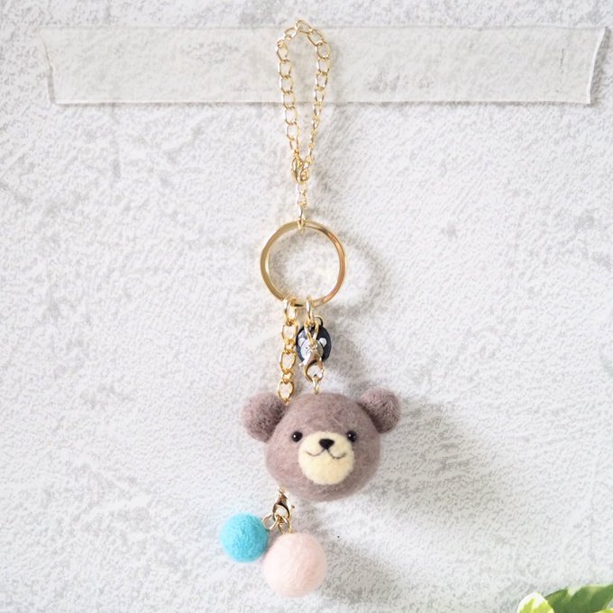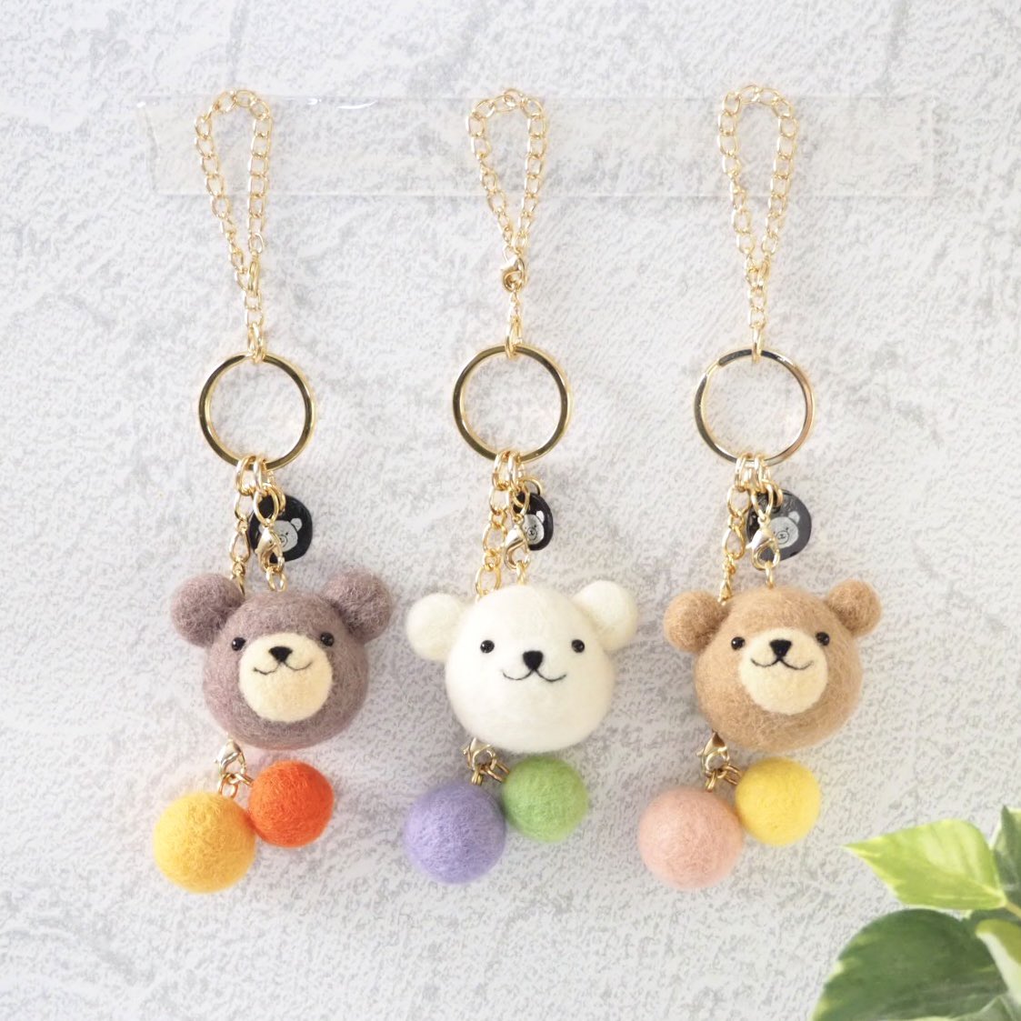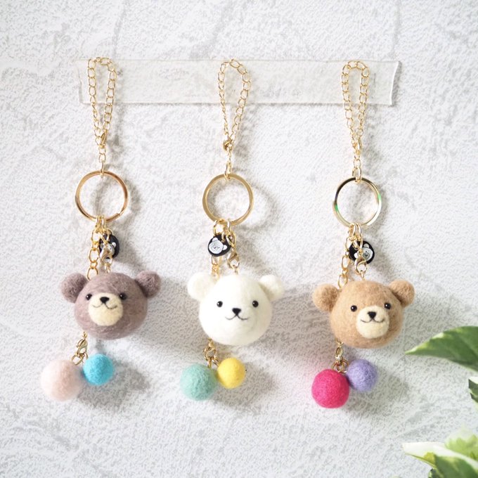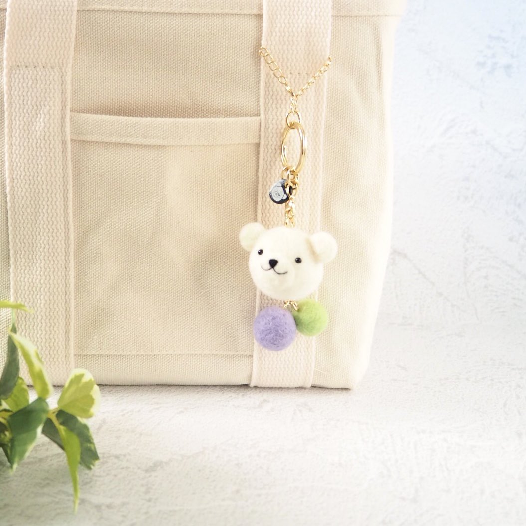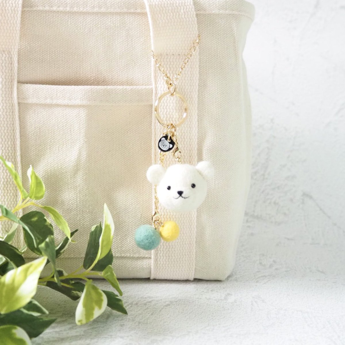 Aki Ako'S GALLERYさんのらぶりぃくまちゃん ベージュ ワンピース(白×水色) 羊毛フェルト ストラップ バッグチャーム minne.com/items/33281639 #minne #minne_new #羊毛フェルト #クマ #くま #needlefelt #バッグチャーム #ビーズ