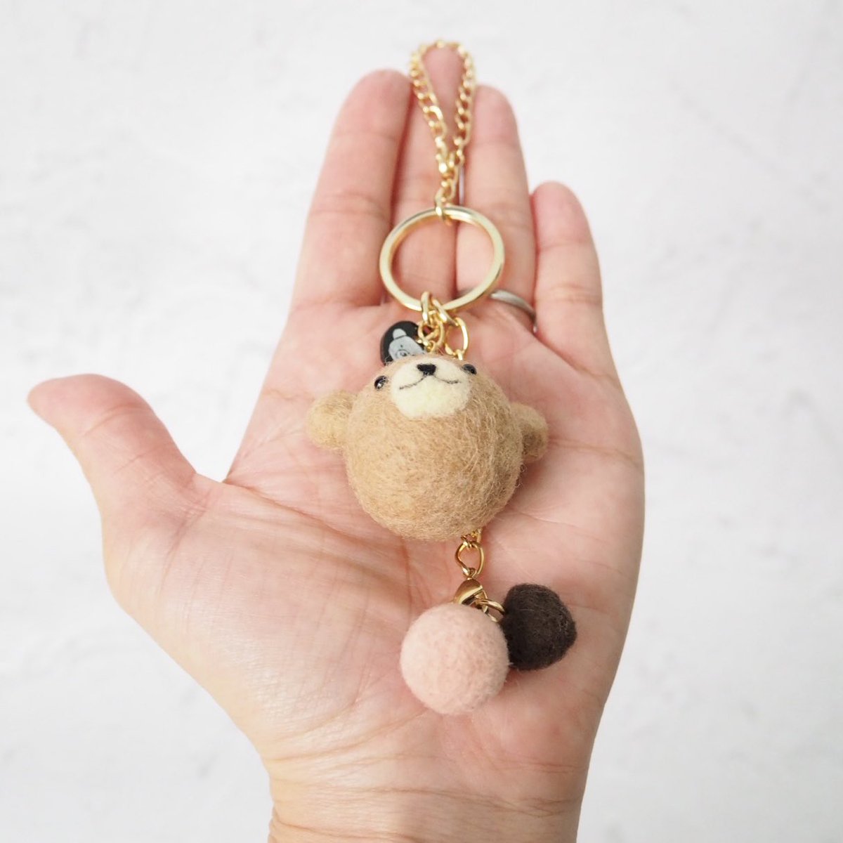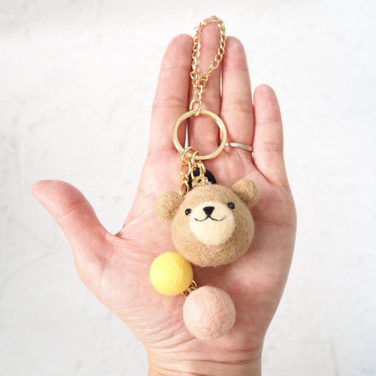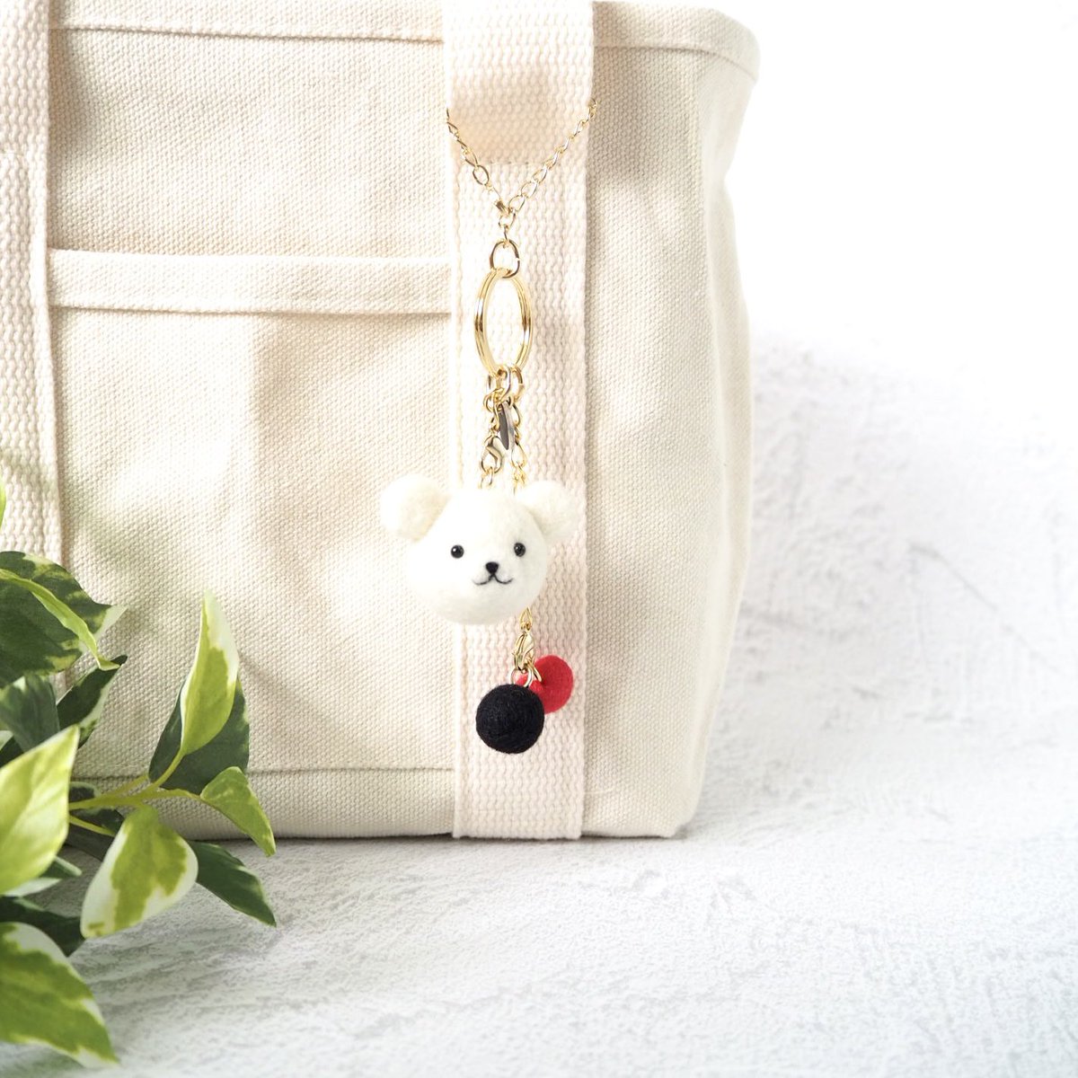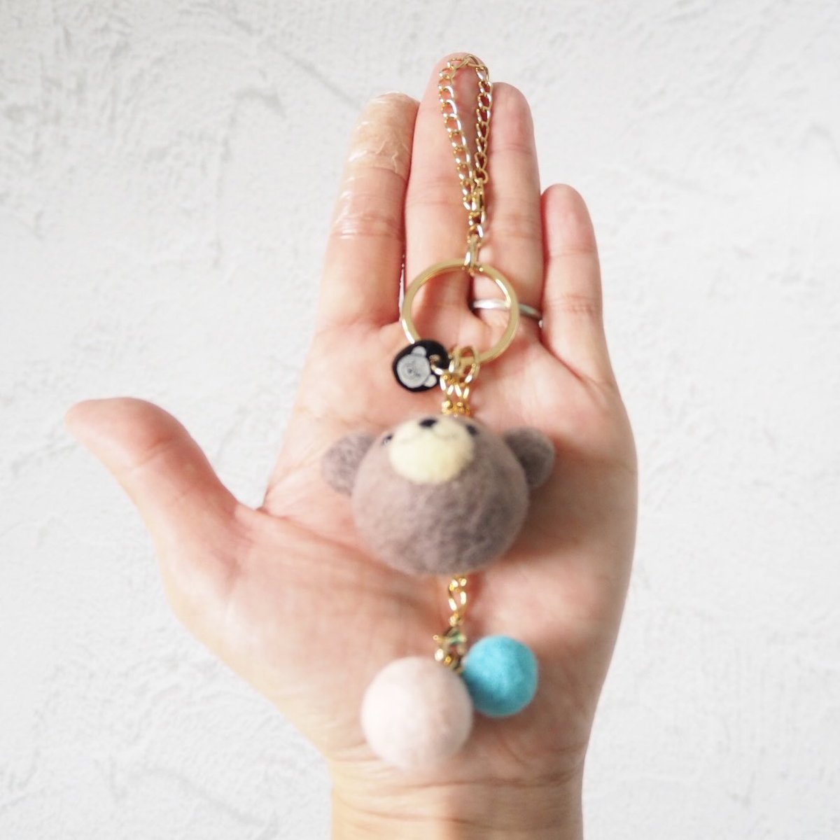 Aki Ako'S GALLERYさんのらぶりぃくまちゃん ベージュ ワンピース(白×水色) 羊毛フェルト ストラップ バッグチャーム minne.com/items/33281639 #minne #minne_new #羊毛フェルト #クマ #くま #needlefelt #バッグチャーム #ビーズ