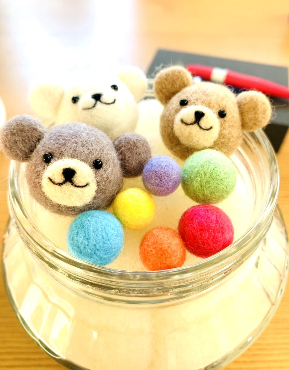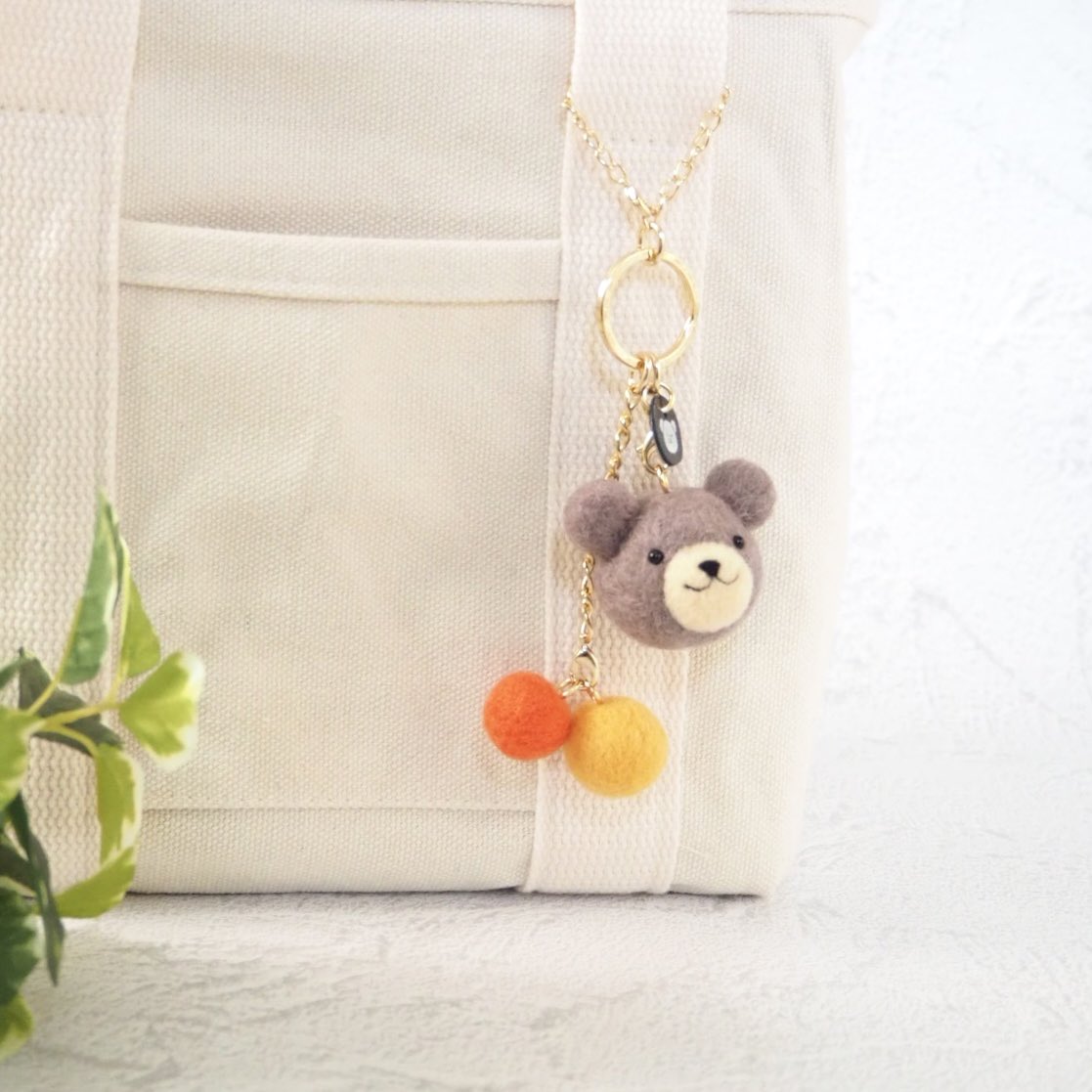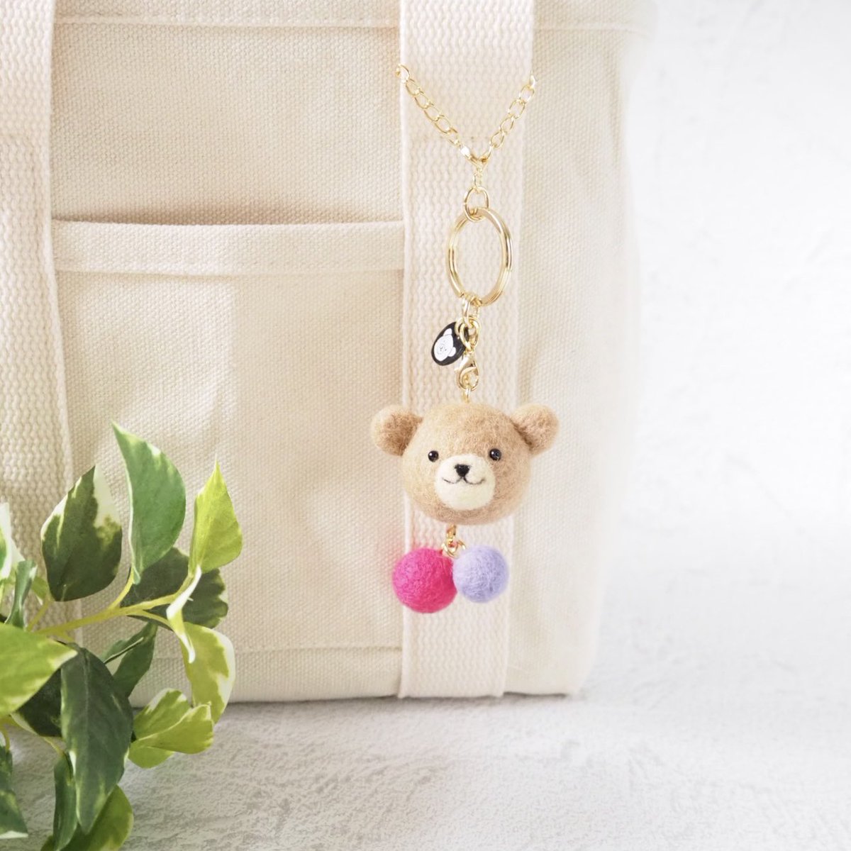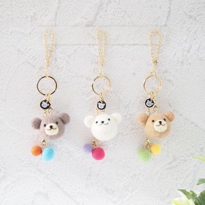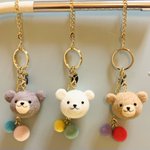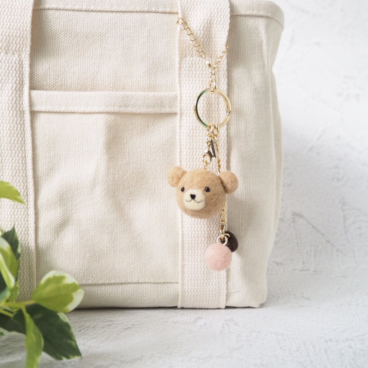 Aki Ako'S GALLERYさんのらぶりぃくまちゃん ベージュ ワンピース(白×水色) 羊毛フェルト ストラップ バッグチャーム minne.com/items/33281639 #minne #minne_new #羊毛フェルト #クマ #くま #needlefelt #バッグチャーム #ビーズ