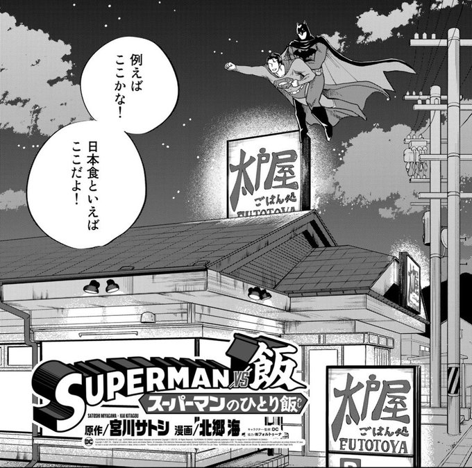 バットマンと大戸屋的なお店でランチするエピソードが無料で読める…!(期間限定だそうなのでお早めに) ↓↓↓ comic-days.com/episode/326975… #SUPERMANvs飯 #バットマンの日