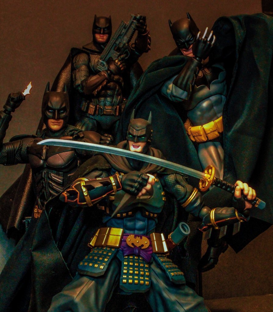 #オモ写 #おもちゃ撮影会 #バットマンの日2022 テーマ「バットマン」 "バットマン🦇バース" 使用フィギュア MAFEX バットマン(ダークナイトver3.0) バットマン(BATAN HUSH) バットマン(DCEU) figma バットマン(ニンジャバットマン)