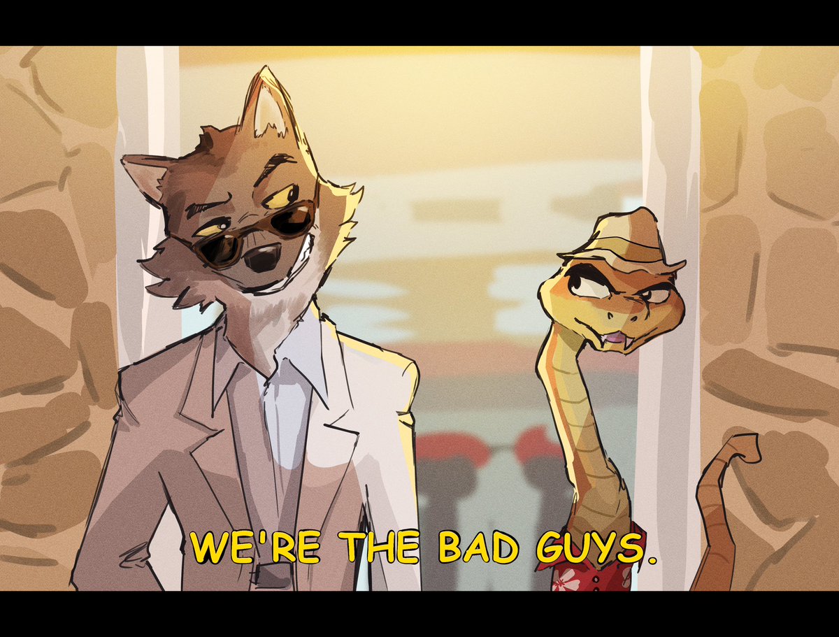 昭和世代のおじさんにはウルフ🐺とスネーク🐍の関係性がこんな風に見えてしまうんよ☺️ #バッドガイズ #バッドガイズがハートを盗む #バッドガイズ描いてみた #TheBadGuys #TheBadGuysfanart