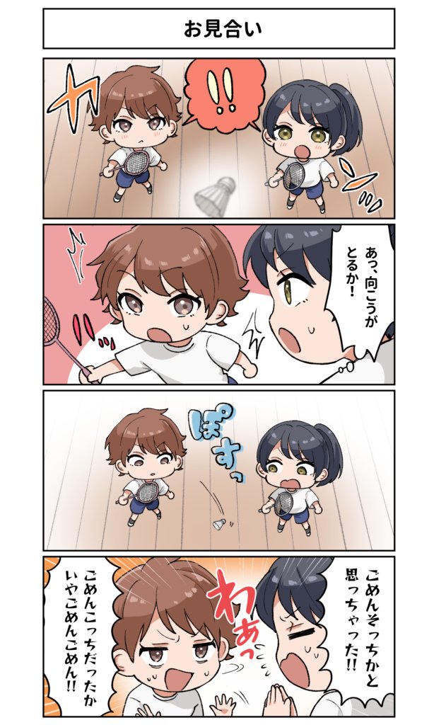 【🏸4コマ】お見合い👀❓ なんか遠慮しがち #バドミントン #あるある #漫画が読めるハッシュタグ #バドミントンタイムズ #4コマ漫画 ▼過去の漫画はこちら!▼ badomintontimes.com/tips/2142/