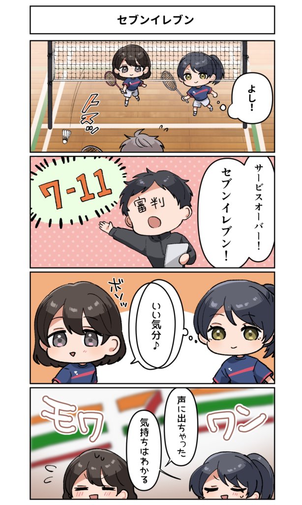【4コマ🏸】7‐ 11 他意は無いです😌 #バドミントン #あるある #漫画が読めるハッシュタグ #バドミントンタイムズ #4コマ漫画 ▼過去の漫画はこちら!▼ badomintontimes.com/tips/2142/