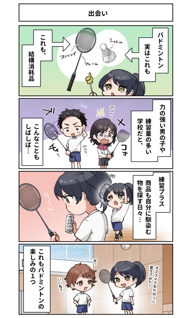 【4コマ🏸】出会い 相棒に歴史あり お気に入りのラケット、シューズ、ありますか?☺️ #バドミントン #あるある #漫画が読めるハッシュタグ #バドミントンタイムズ #4コマ漫画 ▼過去の漫画はこちら!▼ badomintontimes.com/tips/2142/