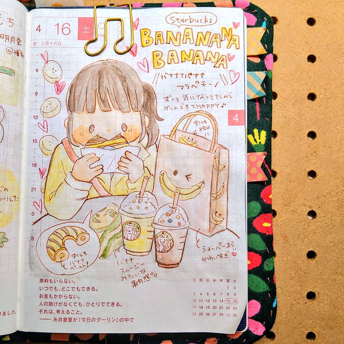 4/16のほぼ日 スターバックスのバナナナバナナフラペチーノ🍌💕 紙袋までとにかくバナナづくしで内側までかわいい💘 バナナドーナツもバナナピューレがたっぷりで想像以上のバナナ感でした🍌🎶✨ #ほぼ日手帳 #ほぼ日手帳2022 #ましろようの絵日記 #バナナナバナナフラペチーノ #Starbucks