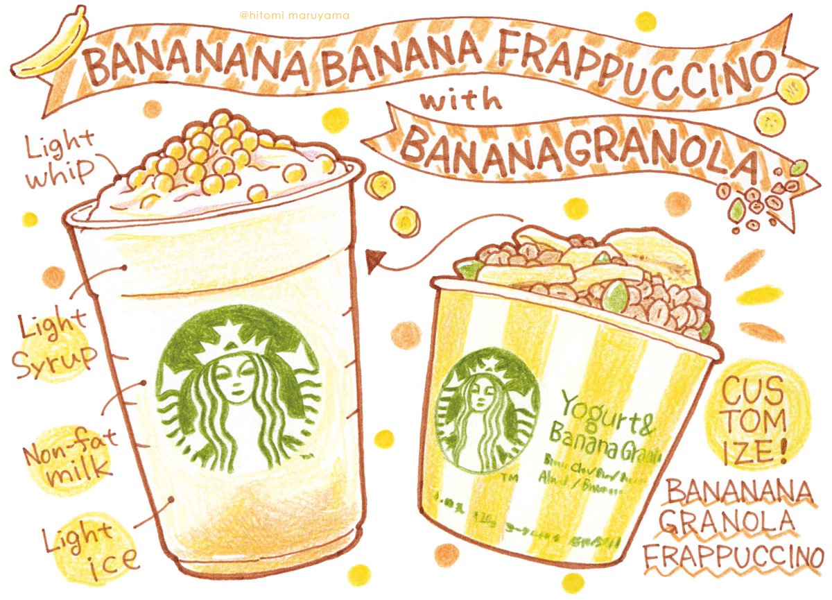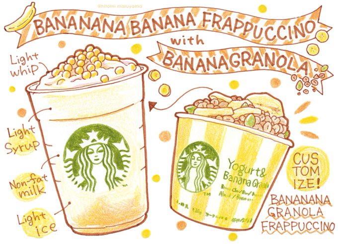 スタバの新作バナナナバナナフラペチーノとチョコバナナナバナナフラペチーノ飲みたすぎて〜〜〜〜!!キャラデザお気に入り♡ #イラスト #春の創作クラスターフォロー祭り #イラスト好きな人と繋がりたい #バナナナバナナフラペチーノ