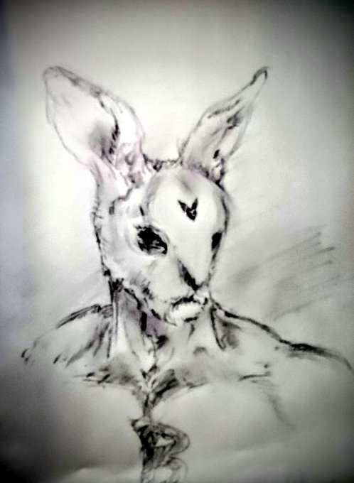 #イラスト #アナログ #うちの子描いてみませんかキャンペーン #リネの創作 #救済のエクソシスト #バニーマン 久しぶりにナニーマン描きました。フォームチェンジで変身した姿でうさぎの能力と怪力を持つフォーム。200キロの巨大な斧を振り回し斧は一振りで真空刃を生み斧が直撃すると即〇する。