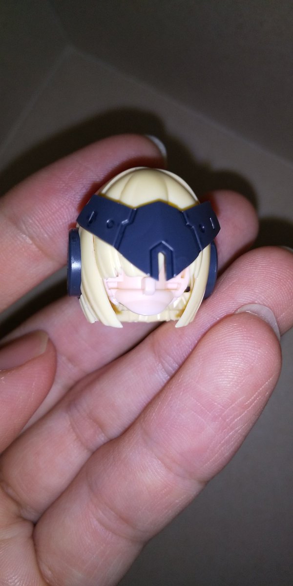 就寝前に、ちょっとだけランチャーさんの武装モード頭部途中ですが組んでました。また後日に続きをやります。写真だと分かりずらいですが髪に薄く墨入れしてます。 #メガミデバイス #バレットナイツランチャー