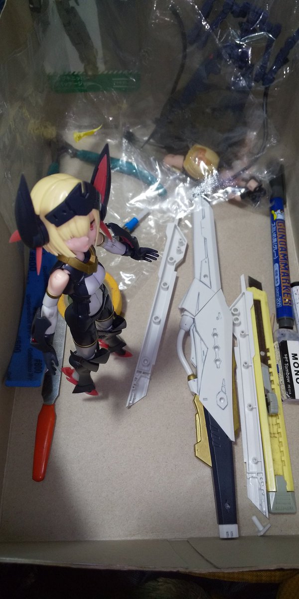 スサノヲちゃんをお迎えしたので、組み立て段階で一緒に写真を撮れるようバレットナイツ姉妹を久しぶりに武装解除しました。 おねえちゃん大好き #メガミデバイス #バレットナイツ #バレットナイツランチャー #バレットナイツランサー #エクスキューショナーブライド