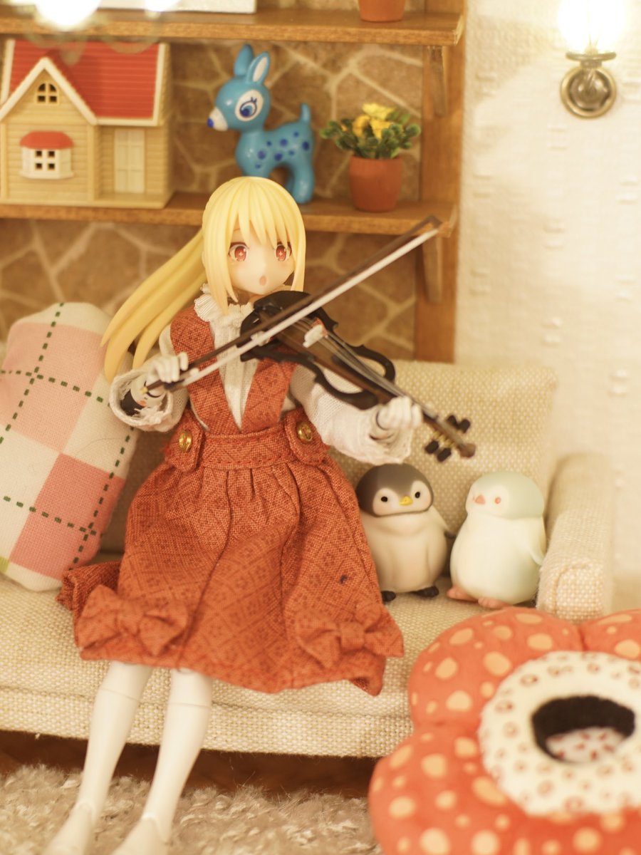 キラキラ✨ランチャーちゃんとエレキバイオリン!🎻🎵 @DRYRIVER13 さまのもうひとつのバイオリンキットも組み立てました! . #メガミデバイス #バレットナイツランチャー #ハンドメイドドール服