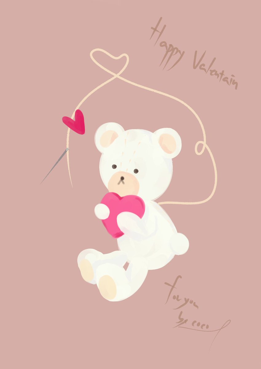 縫われたてのくまさんから気持ちを込めて❣️Happy Valentine❤ #バレンタインポスト #バレンタイン #イラスト #ゆるいイラスト #イラスト好きな人と繋がりたい #art #絵描きさんと繋がりたい