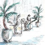 #りえこさん冒険の思い出 その556 タイはバンコク。お寺の中にちょっと洋風な建物が。バンコクのお寺は大きくオープンで散策するのが楽しい〜かな? #絵 #人形 #旅 #水彩画 #スケッチ #watercolor #タイ #バンコク minne.com/@ritakahashi4