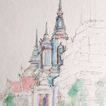 #りえこさん冒険の思い出 その543 タイ。バンコクにはたくさんのお寺が。建物も仏塔も形や大きさはいろいろ。あまり深く考えずに楽しく散策〜かな。 #絵 #人形 #旅 #水彩画 #スケッチ #watercolor #タイ #バンコク minne.com/@ritakahashi4
