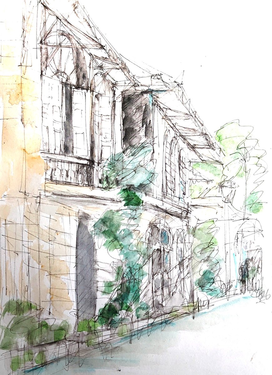 #りえこさん冒険の思い出 その538 タイはバンコク。修道院が併設しているようなお寺が。以前は生活圏の中までのんびり散策できた〜かな。 #絵 #人形 #旅 #水彩画 #スケッチ #watercolor #タイ #バンコク minne.com/@ritakahashi4