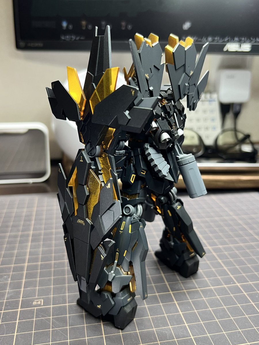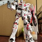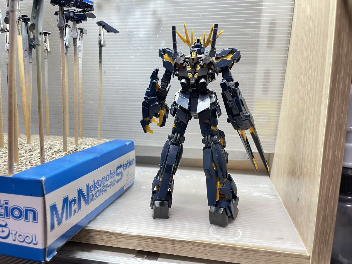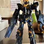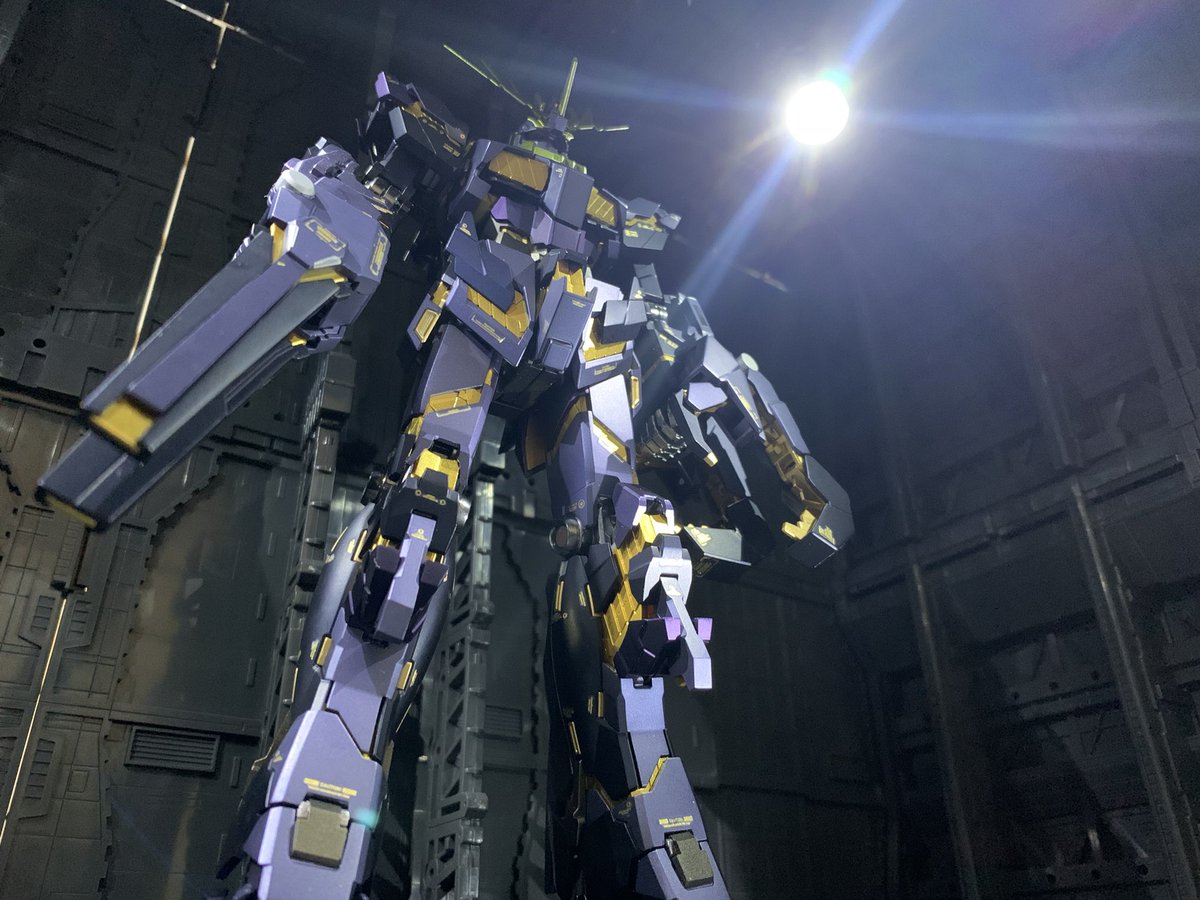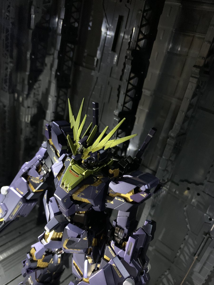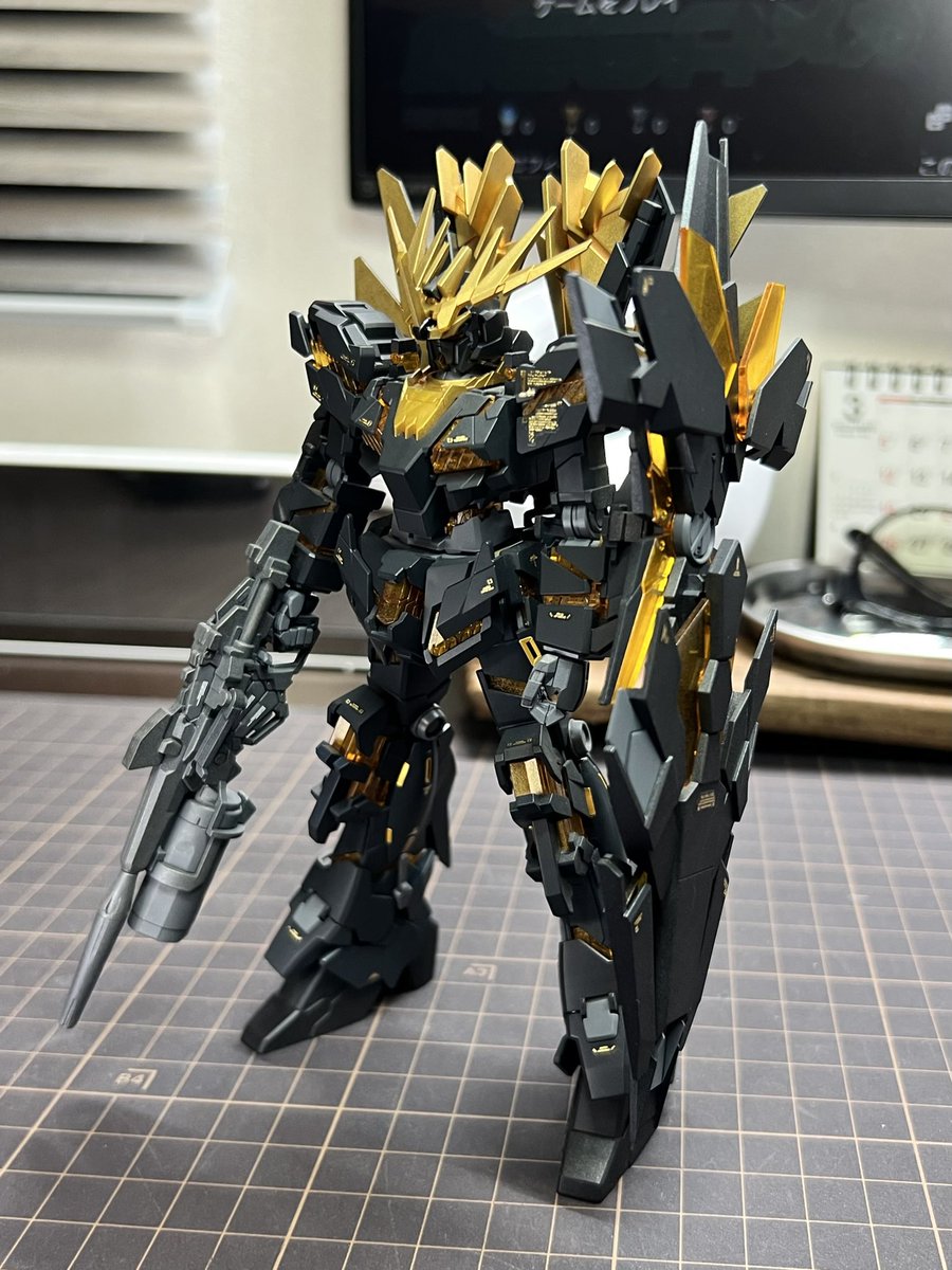 一夜明けて 達成感の余韻に浸りながら朝からポージングさせる中年 そして家族の冷たい目 #ガンプラの画像を貼るとRTされると聞いて #ガンプラ好きと繋がりたい #バンシィ #光の結晶体 #ユニコーンガンダム