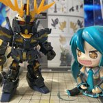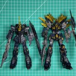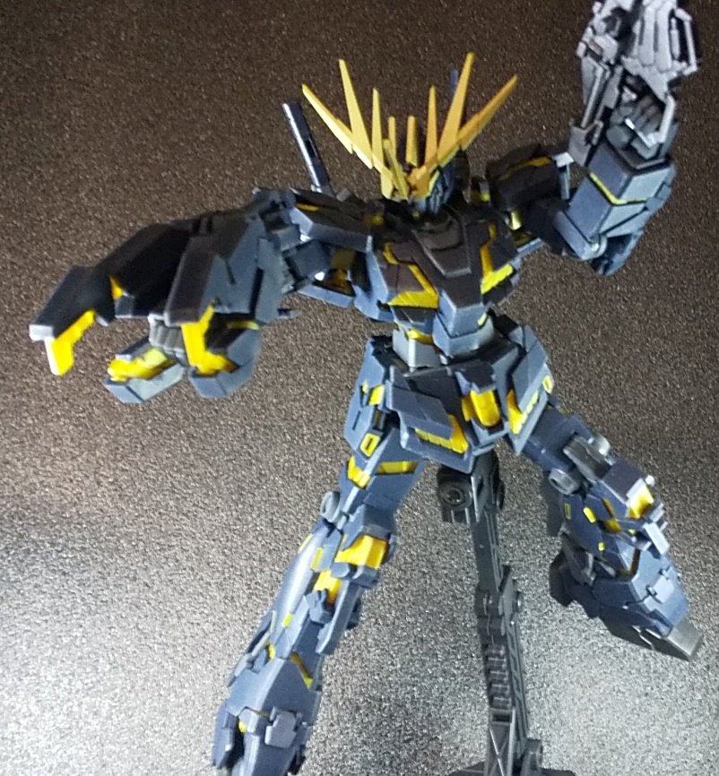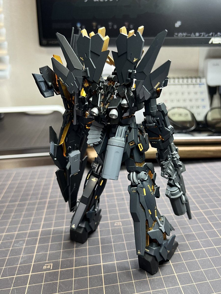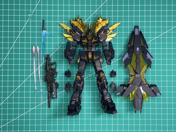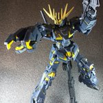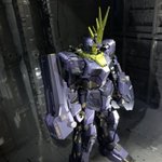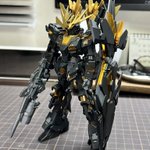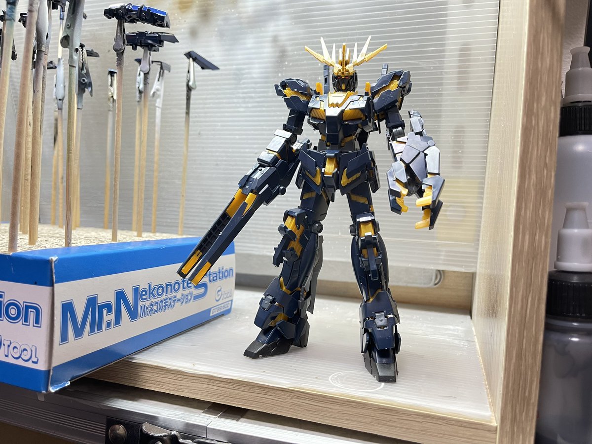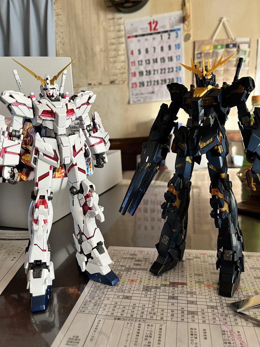 一夜明けて 達成感の余韻に浸りながら朝からポージングさせる中年 そして家族の冷たい目 #ガンプラの画像を貼るとRTされると聞いて #ガンプラ好きと繋がりたい #バンシィ #光の結晶体 #ユニコーンガンダム