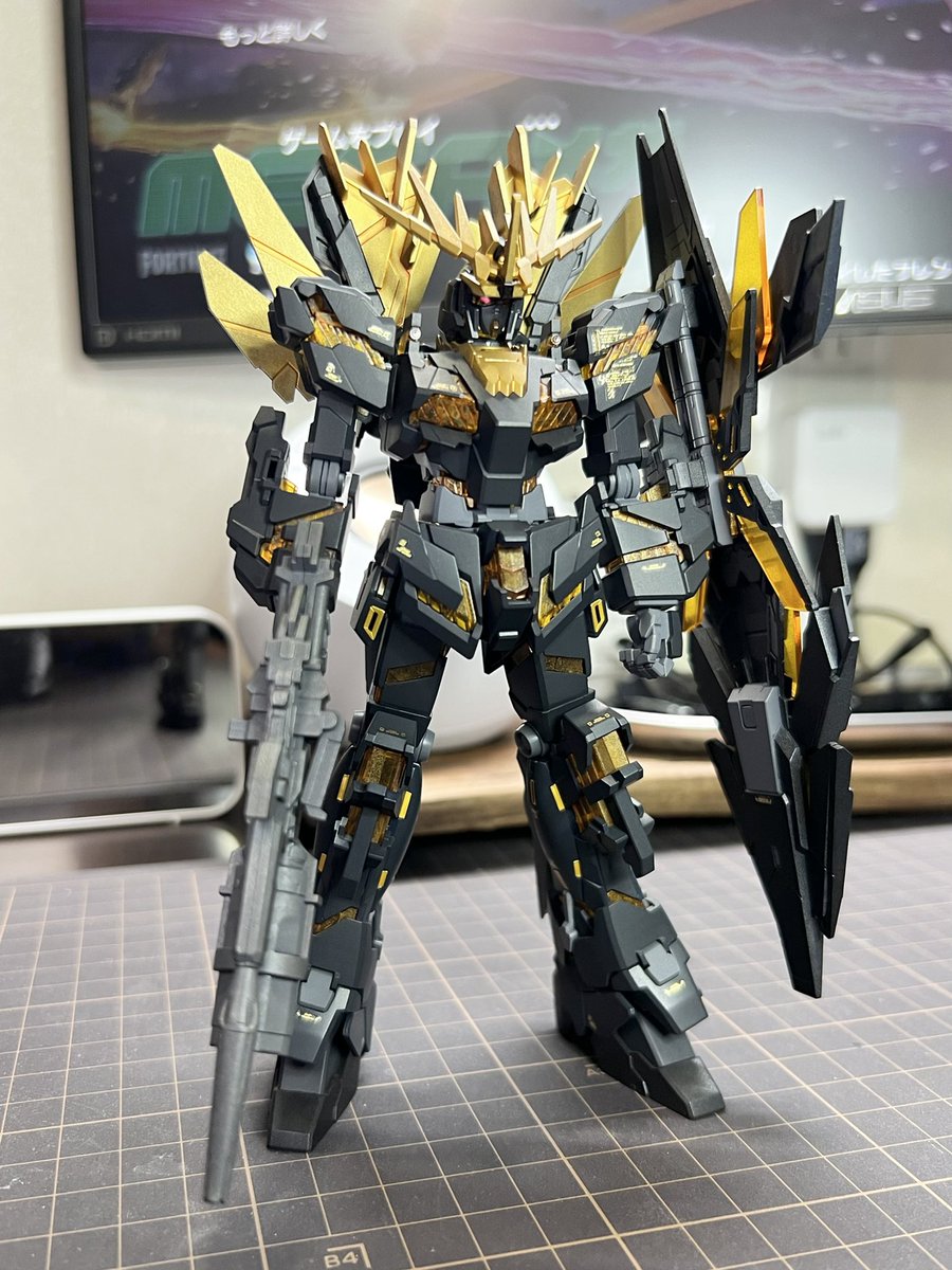 金獅子バンシィ 光の結晶体 部品待ちの状態ではありますがとりあえず組み終えたかったので組んでみる まだまだ未熟者ですが過去1の完成度 #ガンプラの画像を貼るとRTされると聞いて #ガンプラ好きと繋がりたい #バンシィ #光の結晶体 #ユニコーンガンダム