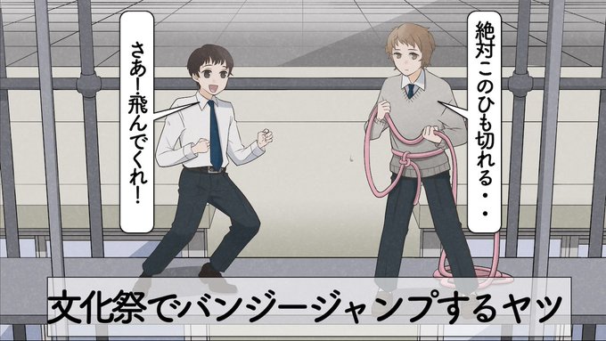 バンジージャンプのアニメコントアップしました! 見て頂けたら嬉しいです^ ^ youtu.be/O6FPsoq-eRg #漫画 #イラスト #イラスト好きな人と繋がりたい #絵描きさんと繋がりたい #コント #アニメ #笑い #バンジー #YouTube