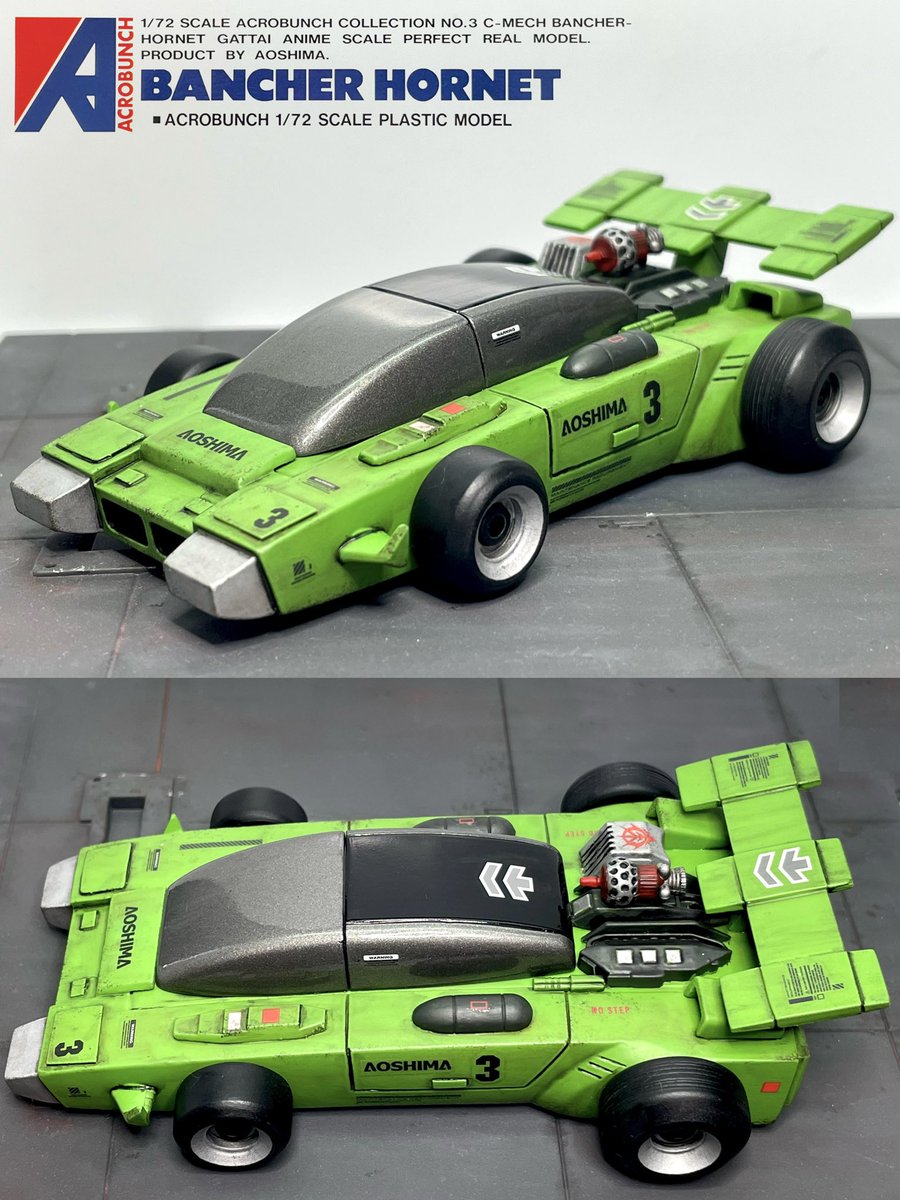 #今月作ったプラモ晒そうぜ 6月はバンチャーホーネットでした。 好みで前輪の位置を前にずらしてみました。 良きキットです! ひと月遅れて作れば #バンチャーホーネット日本GP に出れたのですが💦 出場者(出場車)の皆様応援してます! #バンチャーホーネット #アオシマ #アクロバンチ #旧キット