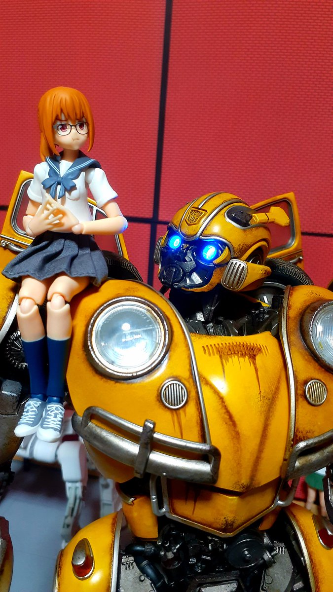 ブリッツ「我は敵を倒すために生まれてきたはずだ!」 武部沙織「違う!大切なものを守るためよ!生き方は今からでも変えられる!」 #夜のフィギュア撮影会 10/31 お題「飛」 #ガルパン #武部沙織 #トランスフォーマー #バンブルビー #ブリッツウィング