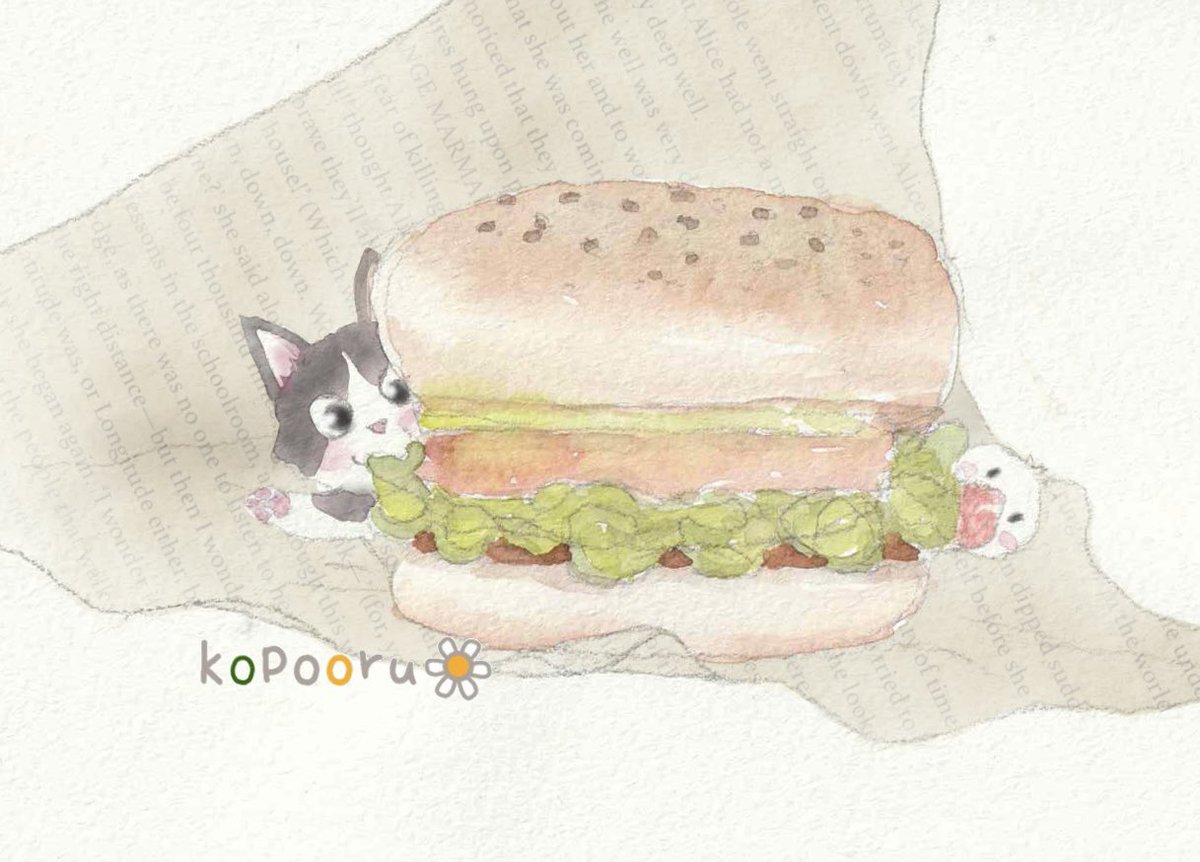 Burger. This one turned out a lil bit better than I thought it would. #watercolorpainting #watercolor #watercolor_painting #burger #cheeseburger #watercolorpaper #絵 #イラスト #イラストレーション #バーガー #食べ物 #女の子 #男の子 #オリジナル #オリジナルアート #作品 #예술