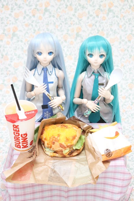 #深夜の初音ミク撮影60分一本勝負 2/15のお題【大きな〇〇】#深夜のドール撮影60分一本勝負 2/15のお題【フリー】フライング #バーガーキング ミク・ユキ「バーガーキングの大きなハンバーガー、胸熱ですねー!」
