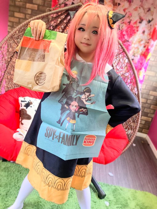 ちちとバーガーキング小樽店いってきた!ちちのほうがたくさんはいってる…ずるい…( ≖_≖) ジト目のアーニャ🥺 ※持ち帰りしたので撮影は自宅です🍔 #アーニャコスプレ #バーガーキング #バーガーキング小樽