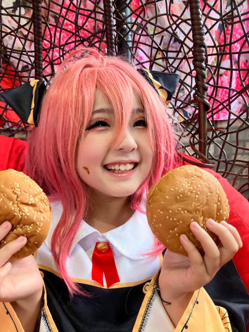 【Cosplay/コスプレ】 スパイファミリー/アーニャ アーニャ、バーガーキングさんピーナッツバターバーガーすき!と、2つ欲張って食べようとしたら、ソースがほっぺについて笑ってごまかすアーニャさん😧🥜 #バーガーキング #アーニャコスプレ #ピーナッツバターロワイヤル