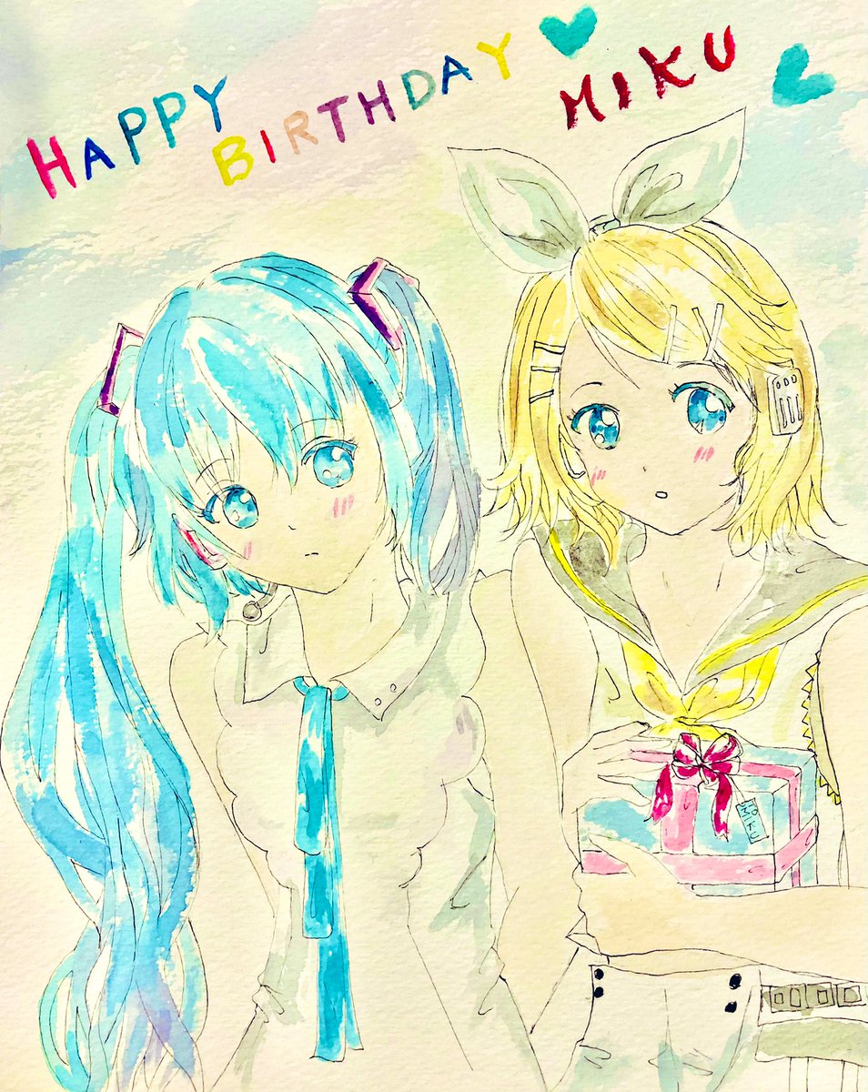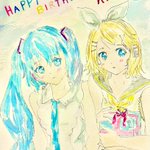 ハッピーバースデーミク❤️ 『レン早く来ないかなあ!一緒にプレゼント渡そうって言ってたのにー』 『リンちゃん何してるのー???』 #初音ミク誕生祭2021 #初音ミクイラスト #初音ミク #バースデーイラスト #イラスト