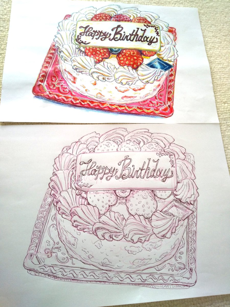 MAX?Diary duffy0415.blog50.fc2.com の HARUMAXさん家のMAXちゃん 7月26日のブログの お誕生日のお祝いのお写真がモデルです♪ #イラスト #夕食 #お誕生日おめでとう #犬 #ポメラニアン #バースデーケーキ