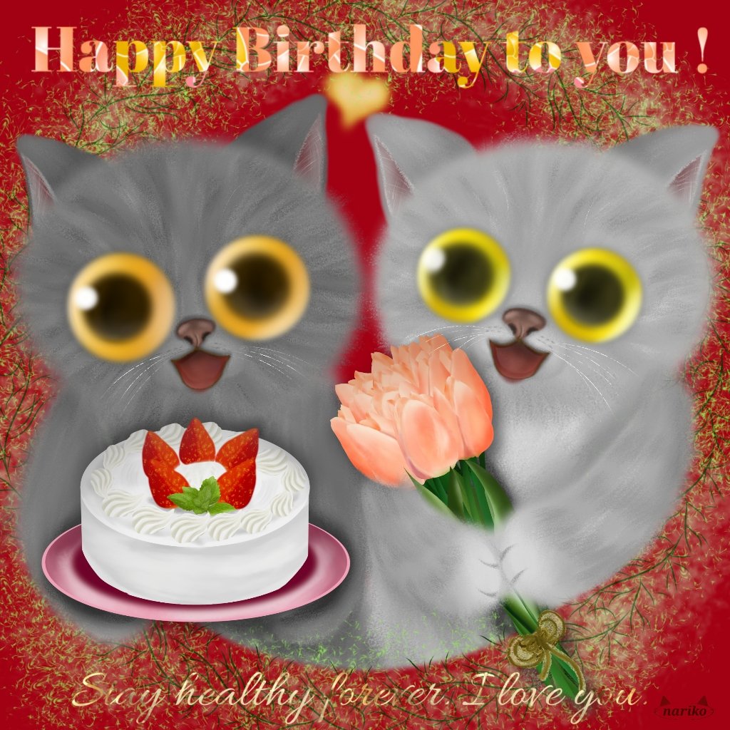 🐈「💖お誕生日おめでとう💖」🐈 本日は私の大切な家族のお誕生日です🥰💕💕💕✨ #バースデーカード #チューリップ #バースデーケーキ #お祝いネコさんズ #エイプリルフールが誕生日 #catillust #ネコ #ねこ #cat #ねこの絵 #イラスト #Illust #ilovecats #猫絵 #infinitePainter #ibisPaint